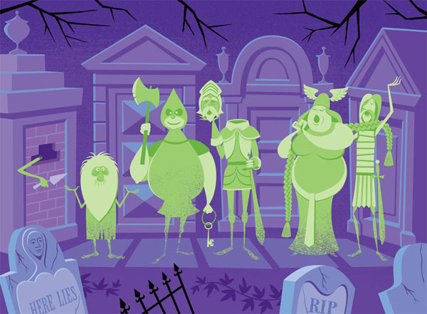 Talk about a match made in heaven! I simply adore art by Josh Agle, aka “Shag,” and now he has teamed up with Disney to create 13 special pieces of artwork to commemorate the 40th anniversary of Disneyland’s eternal attraction, The Haunted Mansion. Shag has done work for Disney before, once for The Enchanted Tiki…