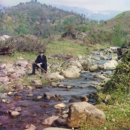 Sergei Prokudin-Gorskiiwas a Russian chemist who’s experimental color photography captures the life of Russia before the Revolution with striking realism. His process consisted of shooting black-and-white exposures with red, green and blue filters, combining them to create a color image. (This process was often done on board a makeshift dark room on his long train journeys.)