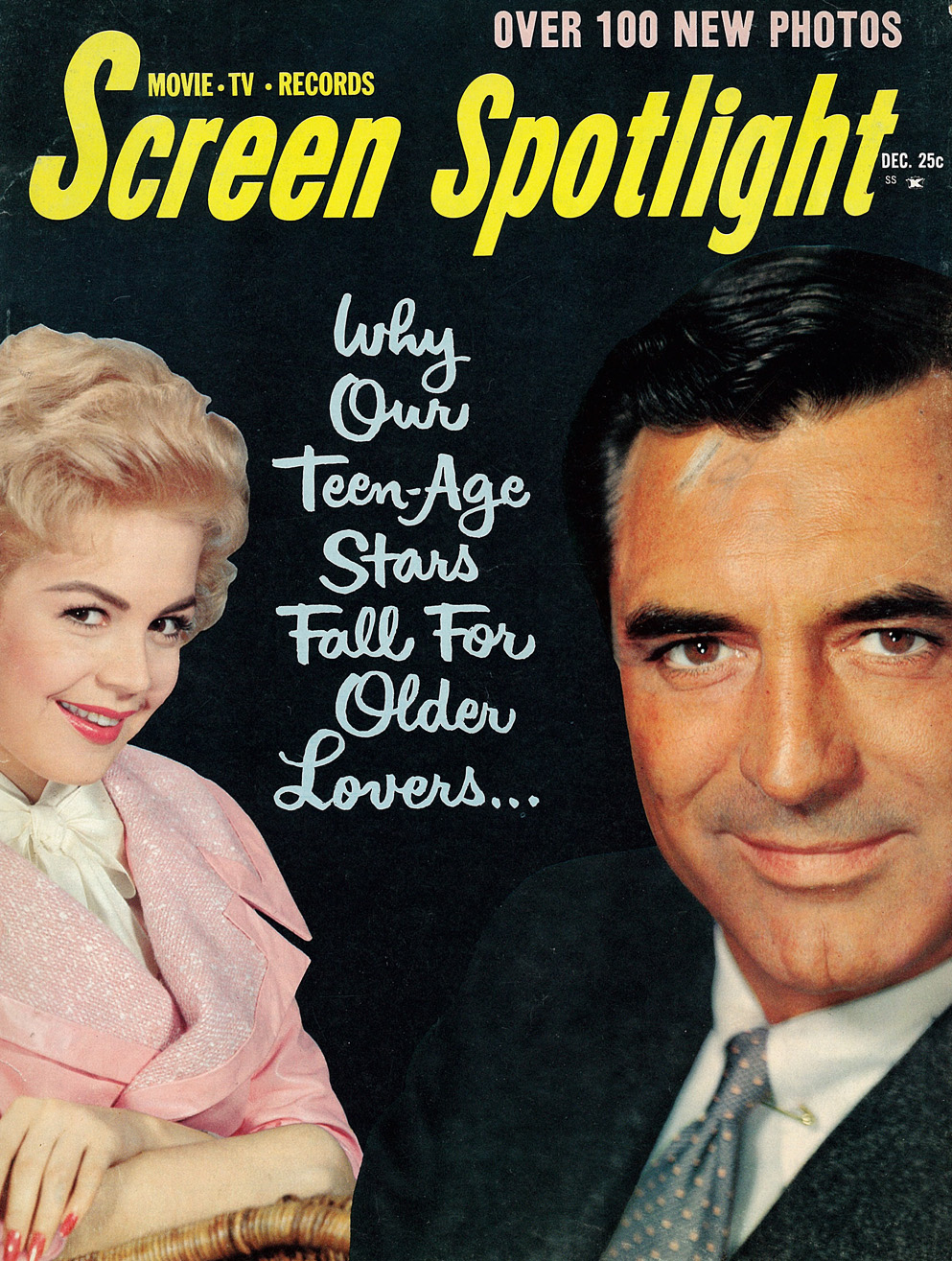 I was perusing the hallowed halls of the Larry Edmunds Cinema bookshop on Hollywood Boulevard the other day and had to take this copy of Screen Spotlight magazine home with me. Dated December 1960, it features an in-the-pink Sandra Dee opposite the eternally sexy Cary Grant (kinda wish they had done a film together!). The article inside discusses the May-December romances of everyone from Bogey and Bacall to Kirk Douglas and Pier Angeli (news to me, on that one).