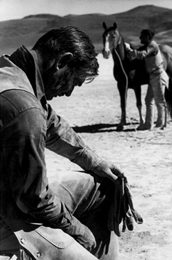 In the film, Gable’s character is a Cowboy forced to face the fact that (to steal from Margaret Mitchell) his civilization is one that has gone with the wind. The same was true of Gable himself, on the Misfits set.
